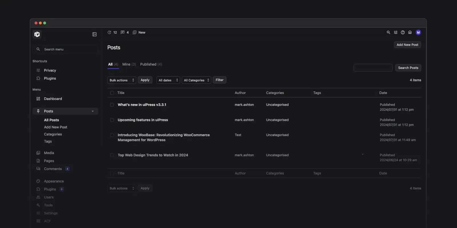 uiXpress – A simple yet powerful admin theme for WordPress